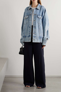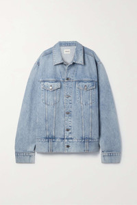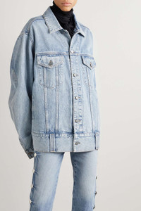 EDITORS'NOTES Khaite's light-washed 'Grizzo' jacket was styled as part of an all-denim outfit on the Spring '23 runway and looked as if from the '90s. Modeled after trucker styles, it's designed for an oversized fit with particularly long sleeves and button-fastening tabs at the hem. SIZE & FIT - Fits true to size, take your normal size - Intended for an oversized fit, cut to be worn very loose - Mid-weight, non-stretchy fabric - Model is 180cm/ 5’11” and is wearing a size Small DETAILS & CARE - Light-blue denim - Button fastenings through front - 100% cotton - Designer wash: Bryce