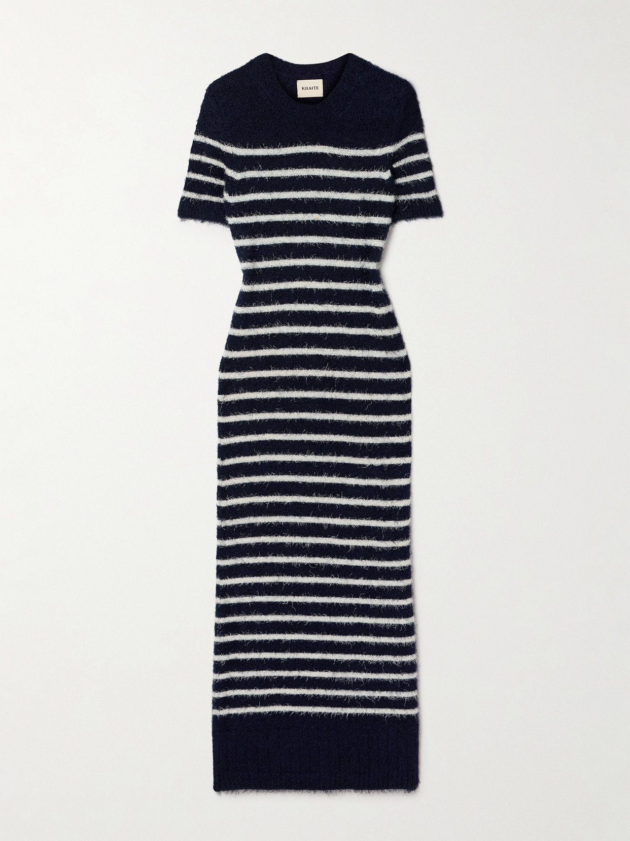 KHAITE's 'Helen' dress is knitted a soft blend of silk and cashmere that's brushed to give it a fluffy handle. It's patterned with classic stripes and has a close, body-skimming fit. Wear yours with leather boots.