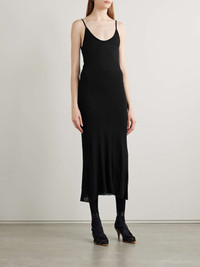 EDITORS'NOTES Understated and effortless, KHAITE's 'Leesal' midi dress can easily be styled for a number of occasions by just switching up the accessories. It's made from two layers of soft, lightweight jersey for a close fit and has a scooped neckline and floaty hem. Wear yours with tights and sandals or pare it back to ballet flats. SIZE & FIT - Fits true to size, take your normal size - Designed for a close fit - Lightweight knit - Model is 180cm/ 5’11” and is wearing a size Small DETAILS & CARE - Black jersey - Slips on - 100% viscose