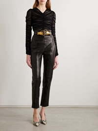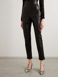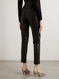 EDITORS'NOTES Khaite's 'Lenn' pants are made from supple leather and have strategically placed seams that streamline the skinny-leg silhouette. Take cues from the Spring '24 runway and style yours with a tonal top and the label's 'Hand' belt threaded over the high-rise waist. SIZE & FIT - Fits true to size, take your normal size - High-rise, cut for a skinny fit - Supple, slightly stretchy leather - Model is 180cm/ 5’11” and is wearing a US 4 DETAILS & CARE - Black leather - Concealed zip fastening along side - 100% leather (Lamb)