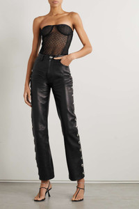 EDITORS'NOTES Khaite's Spring '23 runway was filled with daring pieces like this 'Lori' bustier top. Made from sheer stretch-lace, the fitted style has a gumming along the strapless neckline and underwire at the fully lined cups for a supportive fit. We think it looks so cool tucked into leather pants. SIZE & FIT - Fits true to size, take your normal size - Cut for a close fit - Internal bra for support - Lightweight, stretchy fabric - Model is 177cm/ 5’10” and is wearing a size Small DETAILS & CARE - Black stretch-lace - Slips on - 97% viscose, 3% polyamide