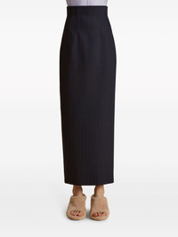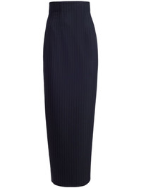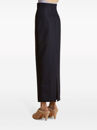 The Loxley pinstriped pencil skirt Highlights - Navy blue/chalk white - Virgin wool blend - Pinstripe pattern - Dart detailing - High-waisted - Pencil silhouette - Concealed rear zip fastening - Rear slit - Mid-length Made in United States Composition Virgin Wool 96%, Elastane 4% Washing instructions Dry Clean Only