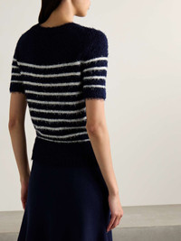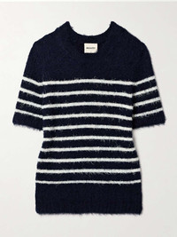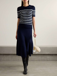 EDITORS'NOTES KHAITE's striped 'Luphia' T-shirt is knitted from a silk and cashmere-blend with an exceptionally soft handle. It's designed for a slim fit and finished with wide ribbed trims. SIZE & FIT - Fits true to size, take your normal size - Designed for a slim fit - Lightweight knit - Model is 180cm/ 5’11” and is wearing a size XSmall DETAILS & CARE - Navy and cream silk and cashmere-blend - Slips on - 58% silk, 42% cashmere