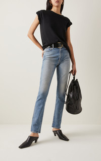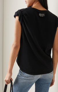 Catherine Holstein continues to dictate the codes of cool downtown NYC style for Spring '22. Rooted in a spirit of rebirth—thanks to a runway set overgrown with weeds and vines, the collection puts a fresh spin on her signature elevated grunge essentials. You'll find her signature ruching details, T-shirts and bodices that are cooled up with silky harnesses, and shoes that range from low-heeled sandals and mules to Teva-like cushioned sandals and clogs. PRODUCT DETAILS - Relaxed fit, crew neck, short sleeves, unlined - Slip on - Composition: 100% cotton - Dry clean only - Imported SIZE & FIT - Our model is 180cm / 5'11" and is wearing a size Small *Fits true to size, our fit specialist recommends taking your normal size