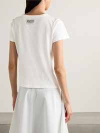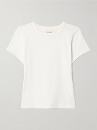 Otherwise classic, KHAITE’s ‘Samson’ T-shirt is designed with a logo patch at the nape, so there's no mistaking it's the brand's. It's made from lightweight cotton-jersey that's cut for a slightly loose fit and has a crewneck. Size & Fit - Fits true to size, take your normal size - Cut for a slightly loose fit - Lightweight, slightly stretchy fabric - S/M/L sizing Details & Care - White cotton-jersey - Slips on - 100% cotton