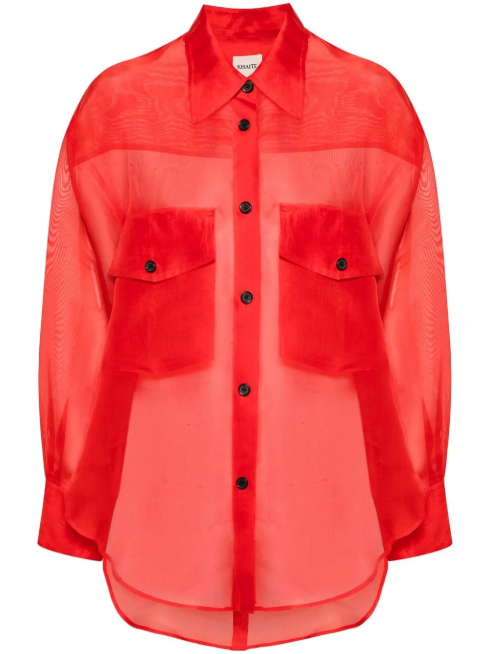 Mahmet silk shirt Highlights - Fire red - Silk - Shantung organza - Semi-sheer construction - Pointed flat collar - Drop shoulder - Extra-long sleeves - Buttoned cuffs - Two chest flap pockets - Curved hem - Unlined - Front button placket Imported Composition Silk 100% SIZE & FIT Model measurements Height 5 ft 10 in(1.77 m) Bust/Chest 29.92 in(76 cm) Hips 34.25 in(87 cm) Waist 23.62 in(60 cm) FittingInformation Designed to be unstructured, offering a loose fit throughout Made from a lightweight non-stretch fabric This piece fits true to size – take your usual size Washing instructions Dry Clean Only