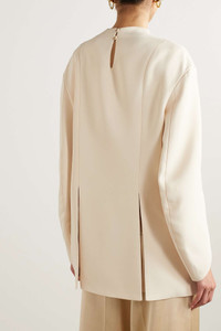 EDITORS'NOTES Khaite's 'Mahni' top looked so chic on the Fall '23 runway styled with tailored pants. Made from crepe, it has contouring seams throughout the bodice and splits along the front and back, so it drapes effortlessly for a loose fit. SIZE & FIT - Fits true to size, take your normal size - Designed for a loose fit - Mid-weight, non-stretchy fabric - Model is 180cm/ 5’11” and is wearing a US 4 DETAILS & CARE - Cream crepe - Button-fastening keyhole at back - 83% acetate, 17% viscose - Designer color: Bone