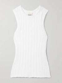 EDITORS'NOTES Khaite's 'Manu' tank is made from a cotton-blend that's knitted with touches of silk, so it looks and feels particularly smooth. Ribbed to accentuate your curves, it's designed for a slim yet flexible fit and works just as well tucked into tailoring or layered beneath one of the label's oversized jackets. SIZE & FIT - Fits true to size, take your normal size - Designed for a slim fit - Mid-weight knit - Model is 180cm/ 5’11” and is wearing a size Small DETAILS & CARE - White cotton-blend - Slips on - 50% cotton, 28% polyamide, 22% silk