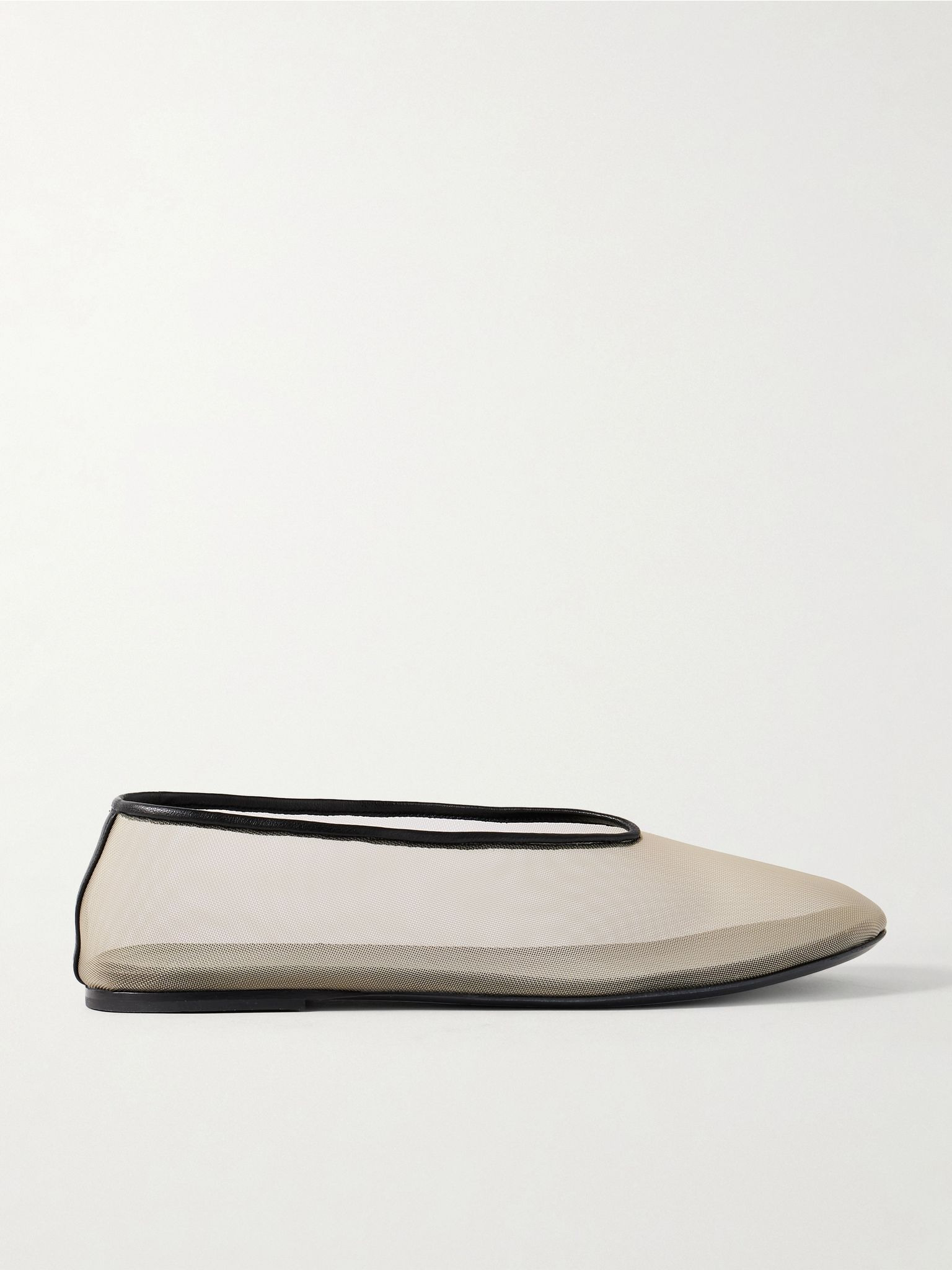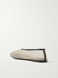 This season, Khaite kept its signature 'Marcy' ballet flats on the minimal side. They've been made in Italy from sheer mesh and have high-cut vamps outlined in glossy black leather. Size & Fit - Fits true to size, take your normal size - Italian sizing Details & Care - Slight heel - Beige mesh, black leather - Slip on