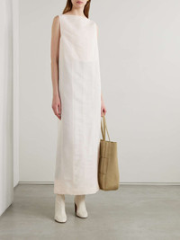 The particular fit and shape of KHAITE's designs play an important role in why they're so covetable. This 'Martay' midi dress is made from crisp cotton-poplin that gently skims the figure and has a high, boat neckline and subtle seams. Keep accessories pared-back to stay in line with the modern, understated aesthetic. Size & Fit - Fits true to size, take your normal size - Intended for a slightly loose fit - Lightweight, non-stretchy fabric - Model is 180cm/ 5'11" and is wearing a US 2 Details & Care - Cream cotton-poplin - Concealed hook and zip fastening at back - 100% cotton