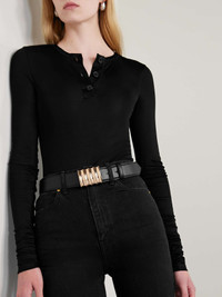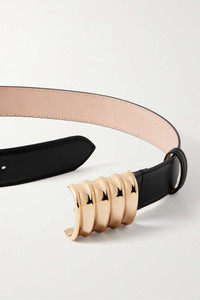EDITORS'NOTES The sculptural buckle on Khaite's 'Julius' belt was also spotted on necklaces at the label's Resort '23 show. Made from smooth leather, it looks just as chic around the waist of a blazer as it does through the loops of jeans. SIZE & FIT - Designed to be worn on the hips or waist - Measurements can be found in the link below DETAILS & CARE - Black leather (Calf) - Push stud fastening - Comes with a dust bag