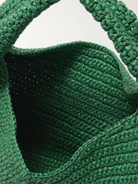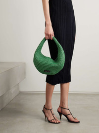 EDITORS'NOTES Khaite's 'Olivia' bag is designed in a distinctive circular shape. It's made from raffia and can be carried in the crook of your arm or over the shoulder. It has just enough space to store your phone, cardholder and a few cosmetics. SIZE & FIT This item’s measurements are: - Handle Drop: 10cm / 3.9in - Depth: 4cm / 1.6in - Height: 25cm / 9.8in - Width: 37cm / 14.6in DETAILS & CARE - Forest-green raffia - Top handle - Ties at open top - Weighs approximately 1.1lbs/ 0.5kg