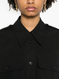 The Missa cotton shirt Highlights - Black - Cotton - Poplin texture - Pleat detailing at the sleeves - Inverted pleat to the rear - Logo-engraved buttons - Oversized pointed collar - Epaulettes - Long sleeves with buttoned cuffs - Two chest flap pockets - Front button fastening - High-low curved hem - Unlined Imported Composition Cotton 100% SIZE & FIT Model measurements Height 5 ft 10 in(1.78 m) Bust/Chest 32.67 in(83 cm) Hips 35.43 in(90 cm) Waist 23.22 in(59 cm) Measurement LENGTH 30.31 in(77 cm) WAIST 47.24 in(120 cm) SLEEVE LENGTH 23.62 in(60 cm) FittingInformation Designed to be unstructured, offering a loose fit throughout Made from a midweight non-stretch fabric This piece fits true to size – take your usual size