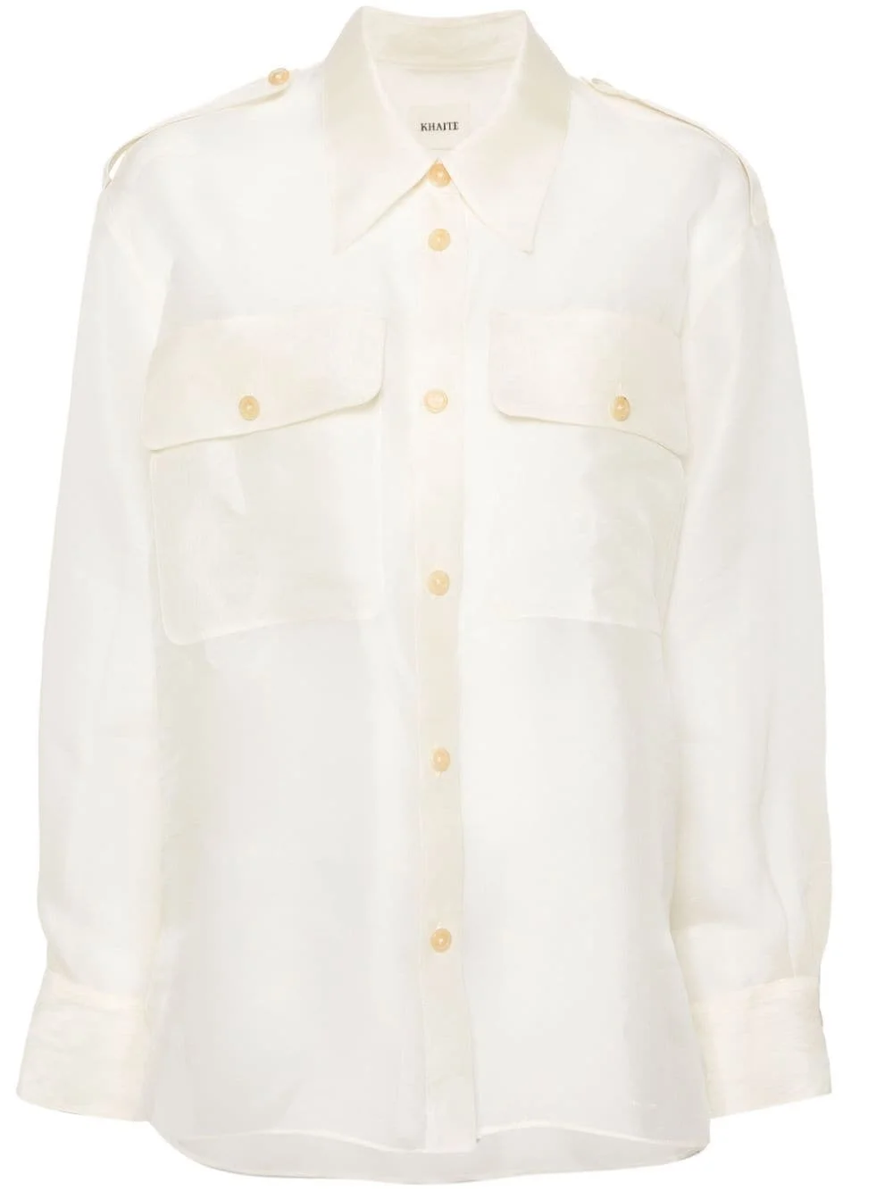 Missa silk shirt Highlights - Bone white - Silk - Chiffon crepe - Straight-point collar - Front button fastening - Long sleeves - Buttoned cuffs - Two button-fastening chest pockets - Curved high-low hem Made in Italy Composition Silk 100% SIZE & FIT Model measurements Height 5 ft 9 in(1.76 m) Bust/Chest 31.1 in(79 cm) Hips 36.61 in(93 cm) Waist 24.8 in(63 cm) FittingInformation Designed for an oversized fit, offering additional room throughout Made from a lightweight non-stretch fabric This piece fits true to size – take your usual size Washing instructions Specialist Cleaning