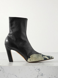 EXCLUSIVE AT NET-A-PORTER. KHAITE''s 'Nevada' ankle boots are inspired by classic cowboy styles. They've been crafted in Italy from supple leather with snake-effect accents and slanted heels that offer 85mm of lift. Wear them with midi dresses or slim jeans. Size & Fit - Fits true to size, take your normal size - Italian sizing Details & Care - Heel measures approximately 85mm/ 3.5 inches - Black and snake-effect leather (Calf) - Zip fastening along side