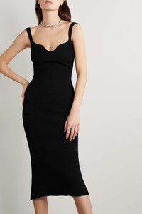 EDITORS'NOTES Sculpting and stretchy ribbed-knit dresses are Khaite's signature. This midi has a notched sweetheart neckline and falls past the knee. Heels and a shoulder bag are all you need to create an outfit that works for day or evening. Wear it with: [Bottega Veneta Clutch id1241276], [Bottega Veneta Sandals id1151677]. SIZE & FIT - Fits true to size, take your normal size - Designed for a slim fit - Mid-weight knit - Model is 177cm/ 5'10" and is wearing a size Small DETAILS & CARE - Black ribbed-knit - Slips on - 83% viscose, 17% polyester - Dry clean - Made in Italy