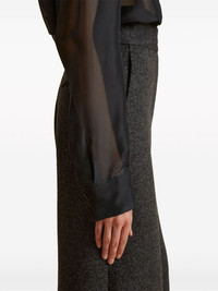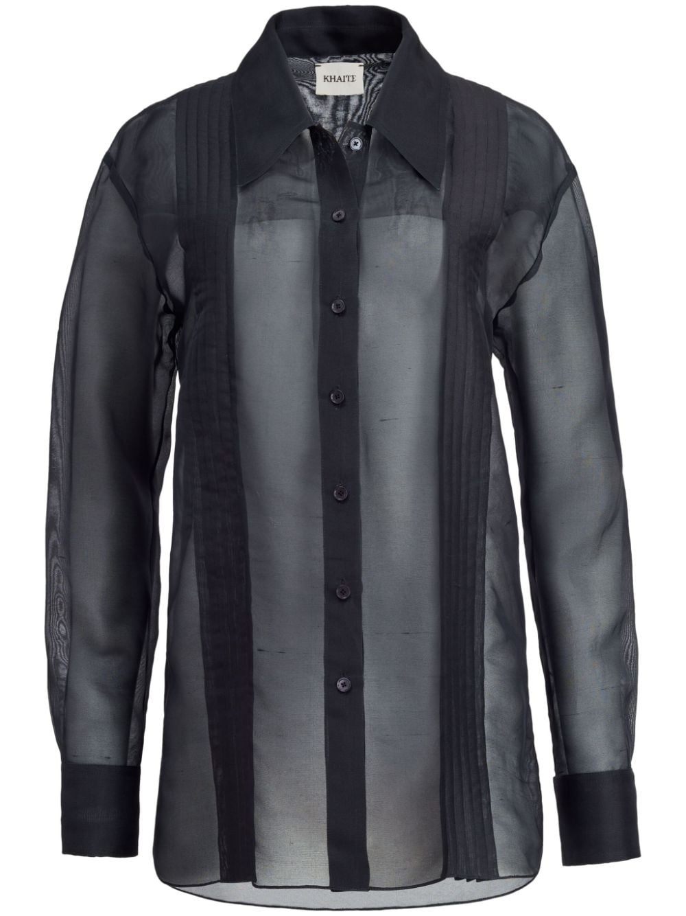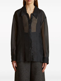 EDITORS'NOTES Khaite's 'Nori' shirt is tailored from crisp silk-organza that's slightly sheer, so it's best underpinned with a camisole or bralette. It has a classic collar and intricate pintucking along the bodice, which gives the fabric weight and texture. Temper the loose fit by tucking yours into high-waisted pants. SIZE & FIT - Fits true to size, take your normal size - Tailored for a loose fit - Dropped shoulder seam - Lightweight, non-stretchy fabric - Model is 180cm/ 5’11” and is wearing a US 4 DETAILS & CARE - Black silk-organza - Button fastenings through front - 100% silk