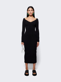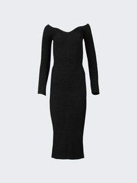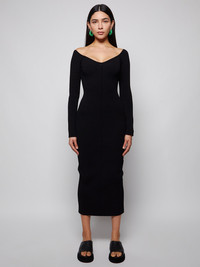 Long sleeve Pia crafted from a black viscose blend featuring an almost-off-shoulder design, a mid-length, long sleeves and a fitted bodycon silhouette. Dimensions: Model is 5'9"/175cm and is wearing a size Medium Composition: 83% viscose, 17% polyester Care: Dry clean only Brand Style: 8605400 K400 Designer/Brand: KHAITE