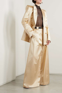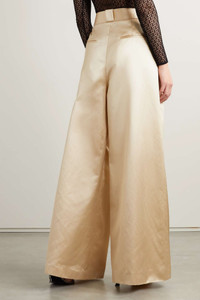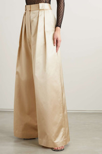 EDITORS'NOTES You can rely on Khaite to create elegant, versatile pieces that will easily slot into your wardrobe. These 'Rico' pants are tailored from glossy cotton-blend satin and have wide legs with pleats for added volume. SIZE & FIT - Fits true to size, take your normal size - Pants measure high rise, however intended fit is to be worn loose and low on the hips - Mid-weight, non-stretchy fabric - Model is 180cm/ 5’11” and is wearing a US 4 DETAILS & CARE - Ecru cotton-blend satin - Concealed hooks, button and zip fastening at front - 56% cotton, 44% viscose; lining: 100% cupro - Dry clean