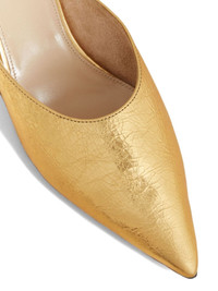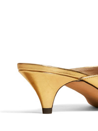 The River leather mules Highlights - Gold-tone - Calf leather - Metallic effect - Pointed toe - Slip-on style - Low cone heel - Branded leather insole - Leather sole Made in Italy Composition Lining: Calf Leather 100% Outer: CALFSKIN 100% Sole: Calf Leather 100%