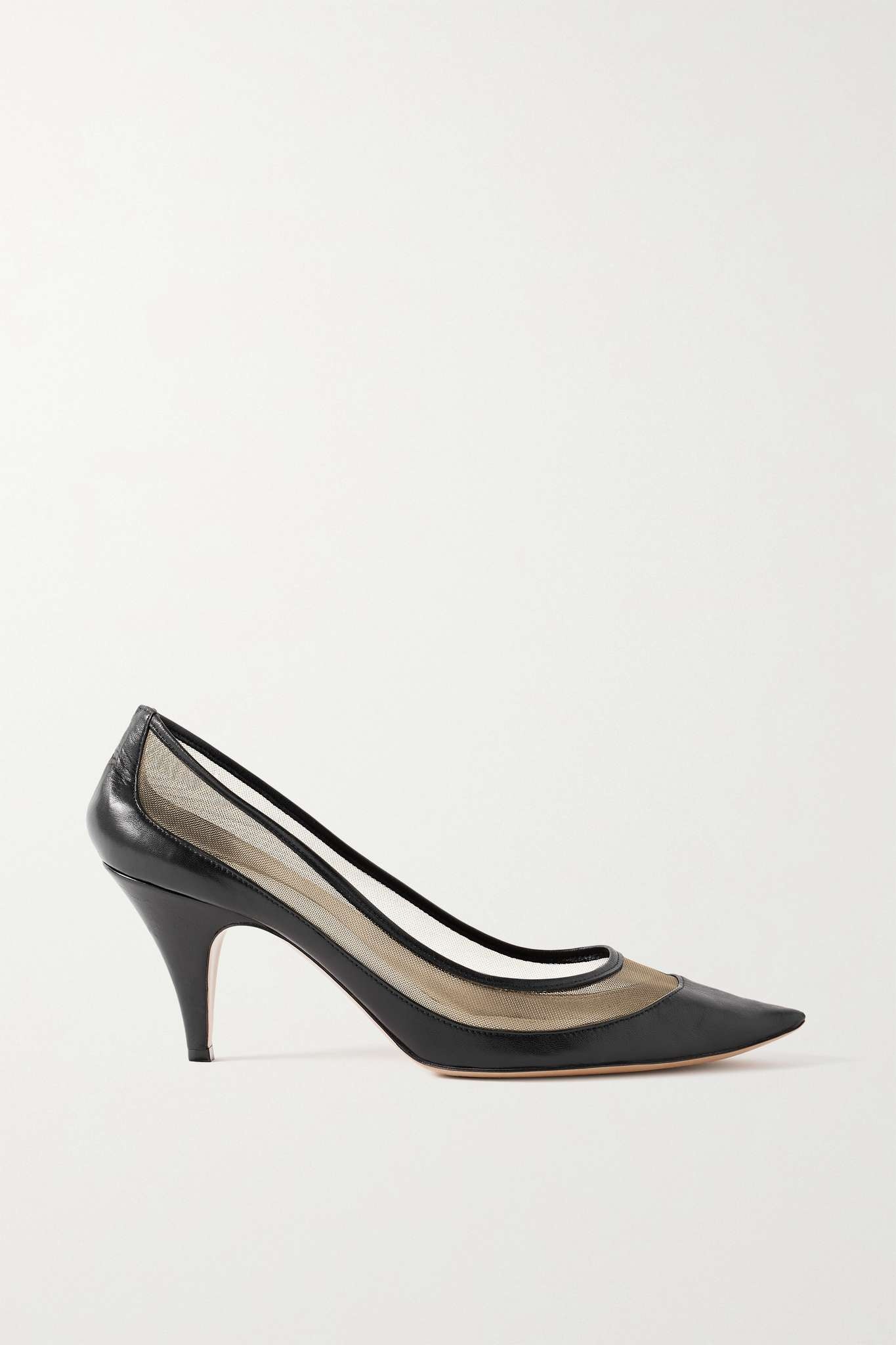 EDITORS'NOTES Khaite's 'River Iconic' pumps are made from leather and traced with sheer mesh. They're set on 75mm heels and have chic pointed toes. SIZE & FIT - Fits true to size, take your normal size - Italian sizing DETAILS & CARE - Heel measures approximately 75mm/ 3 inches - Black leather (Lamb) and mesh - Slip on