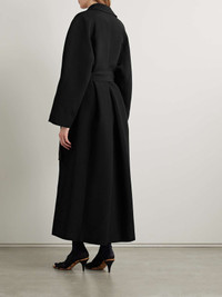 EDITORS'NOTES An impeccably tailored coat like KHAITE's 'Roth' style is key to any well-edited wardrobe. Made in Italy from grain de poudre, it has a loose fit with a pointed collar and shawl lapels. Use the detachable belt to cinch the waist. SIZE & FIT - Fits true to size, take your normal size - Designed for a loose fit and is sized for layering - Use the belt to cinch in at the waist - Mid-weight, non-stretchy fabric - Model is 180cm/ 5’11” and is wearing a US 2 DETAILS & CARE - Black grain de poudre - Slips on - 75% viscose, 25% polyamide