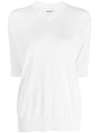 fine-knit V-neck sweatshirt Highlights - Milk white - Fine knit - Ribbed trim - V-neck - Short sleeves - Straight hem Made in Italy Composition Viscose 97%, Polyamide 3% SIZE & FIT Model measurements Height 5 ft 10 in(1.77 m) Bust/Chest 29.92 in(76 cm) Hips 34.25 in(87 cm) Waist 23.62 in(60 cm) FittingInformation Designed for a relaxed fit, this piece allows for comfort and movement when worn Made with a lightweight knit, this piece offers some stretch This piece fits true to size – take your usual size Washing instructions Dry Clean Only