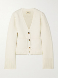 Khaite's 'Scarlet' cardigan is crafted from Mongolian cashmere, specifically chosen for its exceptional softness. It comes in a versatile off-white hue and is designed for a relaxed fit with knuckle-grazing sleeves and cozy ribbed trims. Wear yours with the top button undone to showcase a glimpse of a lacy camisole or bra. Size & Fit - Fits true to size, take your normal size - Designed for a relaxed fit - Oversized sleeves - Mid-weight knit - S/M/L sizing Details & Care - Off-white cashmere - Button fastenings through front - 100% cashmere; buttons: 100% horn (Buffalo) - Dry clean