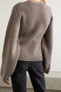 - Tan cashmere-blend - Button fastenings through front - 95% cashmere, 5% elastane; buttons: 100% horn (Buffalo) - Dry clean - Designer color: Barley - Imported