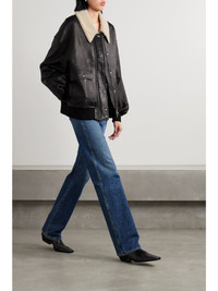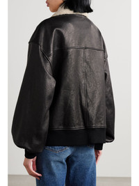 Shellar shearling-trimmed leather jacket Black