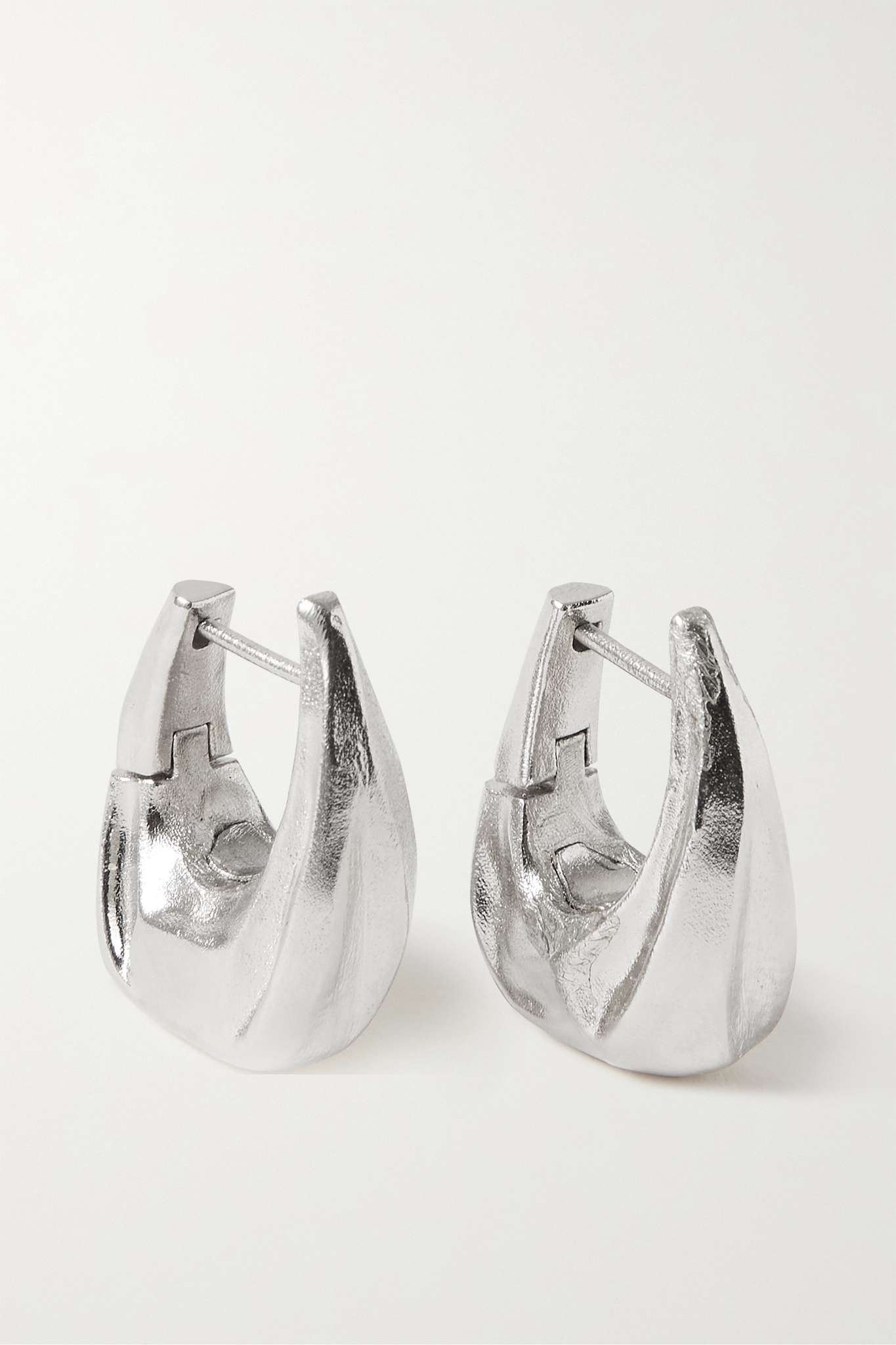 EDITORS'NOTES Khaite's 'Olivia' earrings are sculpted in the same crescent shape as the label's namesake tote. They're made from silver-tone metal and subtly textured to catch and reflect the light. SIZE & FIT This item’s measurements are: - Drop: 2.8cm / 1.1in - Length: 3cm / 1.2in - Height: 2cm / 0.8in - Width: 1cm / 0.4in DETAILS & CARE - Post fastening for pierced ears