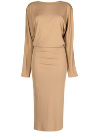 The Trina open-back midi dress Highlights - Beige - Wool - Shift style - Draped detailing - Round neck - Concealed rear zip fastening - Long sleeves - Open back - Straight hem - Mid-length Imported Composition Wool 100% SIZE & FIT Model measurements Height 5 ft 10 in(1.78 m) Bust/Chest 29.13 in(74 cm) Hips 35.43 in(90 cm) Waist 23.62 in(60 cm) FittingInformation Designed for a loose fit at the chest with a close fit over the waist and hips Made from a midweight non-stretch fabric, this piece offers minimal elasticity when worn This piece fits true to size – take your usual size Washing instructions Read Manufacturer Guidelines