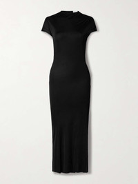 EDITORS'NOTES Khaite knows just how to manipulate fabrics so that they fall beautifully over your frame. This 'Yenza' maxi dress is made from jersey that's draped to create a nice fluidity and gently skims your figure before falling to a floaty hem. SIZE & FIT - Fits true to size, take your normal size - Designed for a slim fit - Mid-weight, slightly stretchy fabric - Model is 180cm/ 5’11” and is wearing a size Small DETAILS & CARE - Black jersey - Concealed hook and zip fastening at back - 100% viscose