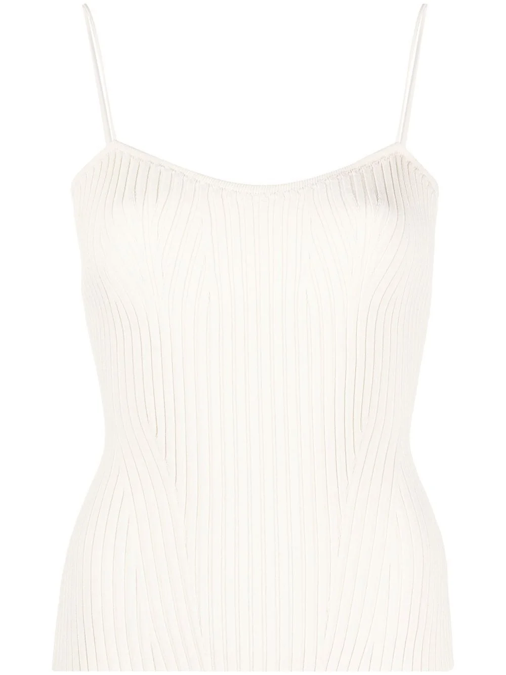 The Ziggy knitted top Off-beat takes on wardrobe staples are KHAITE's forte, as echoed in the dynamic construction of this sculpted ribbed-knit top. Framed by delicate straps and a sweetheart neckline, it's characterised by a bodice that's shaped by strategic ribbing. Made in Italy Composition Viscose 71%, Polyester 15%, Polyamide 13%, Elastane 1% SIZE & FIT Model measurements Height 5 ft 10 in(1.78 m) Bust/Chest 31.49 in(80 cm) Hips 35.03 in(89 cm) Waist 23.62 in(60 cm) FittingInformation This piece fits true to size. We recommend you get your regular size Cut for a slim fit Made with a mid-weight stretch fabric Washing instructions Dry Clean Only