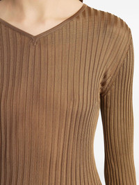 Tia ribbed v-neck top Highlights - Brown - Ribbed knit - V-neck - Long sleeves - Straight hem Made in Italy Composition Viscose 97%, Polyamide 2%, Polyurethane 1% Washing instructions Dry Clean Only