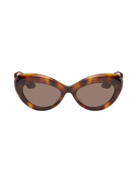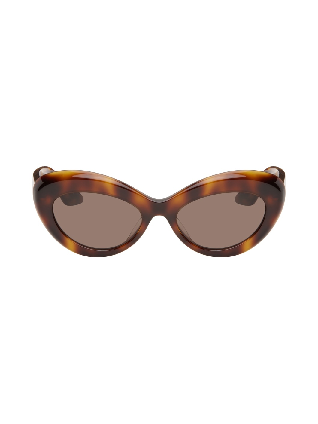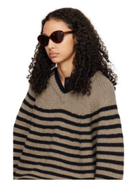 Handcrafted cat-eye tortoiseshell acetate-frame sunglasses in tones of brown. · Brown lenses · Integrated nose pads · Logo engraved at temple tips · Exposed core wire · Includes pouch · Size: 53.19 145 Part of the Khaite x Oliver Peoples collaboration. Supplier color: Dark mahogany
