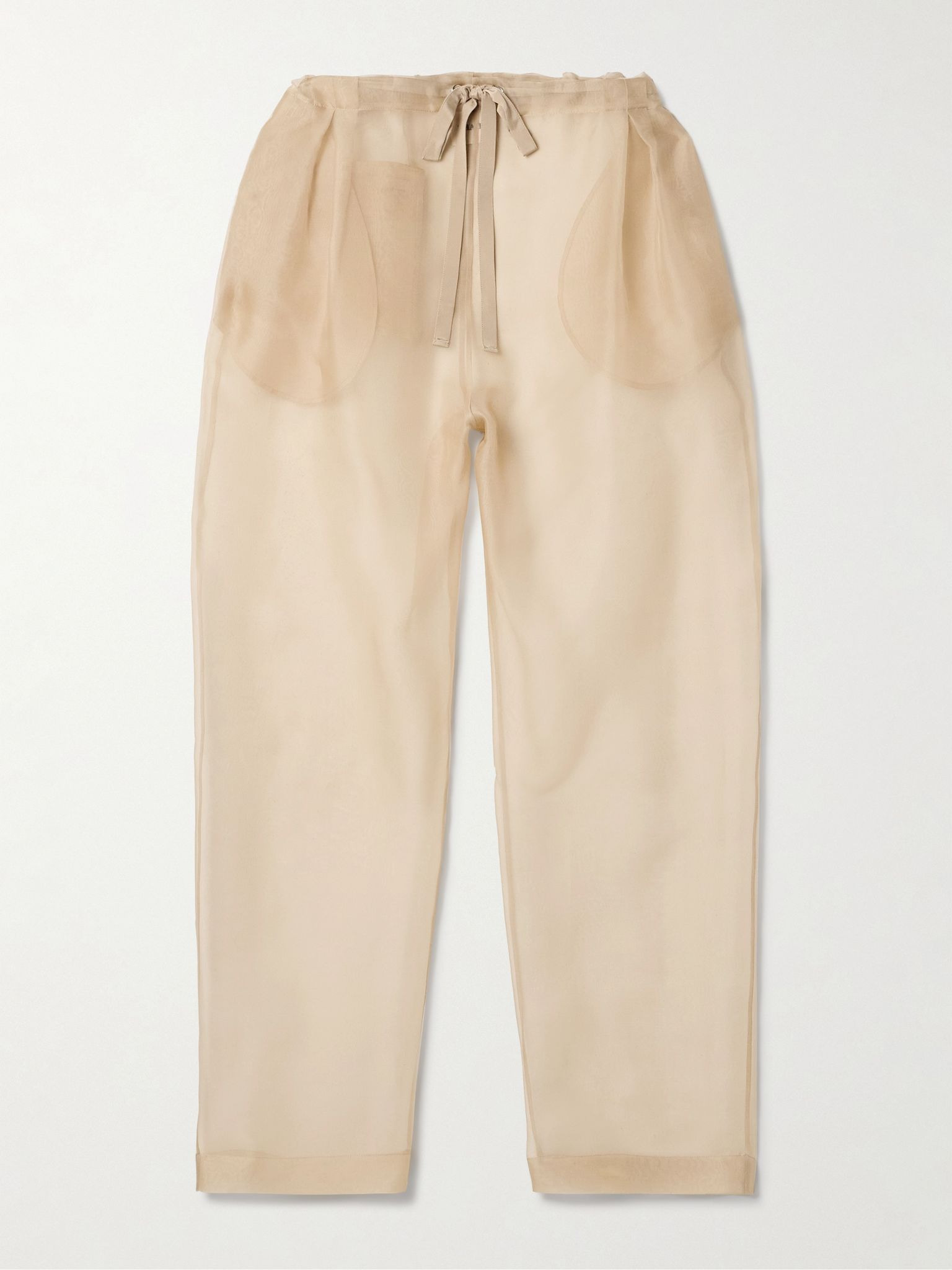 Lightness inspired KHAITE's Spring '25 collection, as seen through so many of its sheer pieces, like these 'Trenton' pants. They're cut from silk-organza - a key, archival fabric seen throughout the range - and pleated at the high waist. Underpin yours with tonal briefs. Details & Care - Beige silk-organza - Pull on - 100% silk
