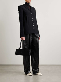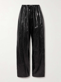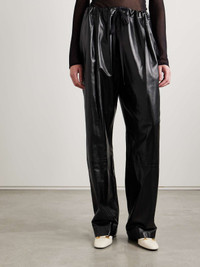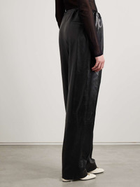 EDITORS'NOTES KHAITE's pants have a drawstring waistband, giving them the comfort of more casual styles. Cut from supple black leather, they have a relaxed shape that's pleated for volume. Style yours with the brand's knitwear and loafers. SIZE & FIT - Fits true to size, take your normal size - Mid-rise, cut for a relaxed fit - Drawstring waist, designed for a flexible fit - Supple, slightly stretchy leather - Model is 175cm/ 5'9" and is wearing a US 4 DETAILS & CARE - Black leather - Pull on - 100% leather (Lamb) - Specialist clean