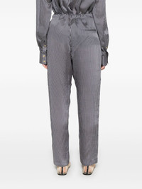 Trenton trousers Highlights - Navy blue - Drawstring waist - Two side inset pockets - Rear welt pocket Made in United States Composition Outer: Viscose 86%, Silk 14% Lining: Silk 100% SIZE & FIT Model measurements Height 5 ft 10 in(1.78 m) Bust/Chest 33.85 in(86 cm) Hips 36.61 in(93 cm) Waist 26.77 in(68 cm) Measurement FRONT RISE 13.38 in(34 cm) HIPS 45.66 in(116 cm) WAIST 39.37 in(100 cm) FittingInformation Designed for a relaxed tapered cut, these trousers allow for a close fit at the waist and offer a loose fit at the thighs, with a closer fit toward the ankles Adjust this piece’s waistband to your preference using the drawstring Made from a lightweight non-stretch fabric Washing instructions Dry Clean Only