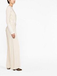 high-waisted wide-leg trousers Embodying the label’s penchant for timeless design, these high-waisted trousers from KHAITE are tailored to a fluid wide-leg silhouette with pressed pleats. Made in Italy Composition Outer: Virgin Wool 75%, Viscose 25% Lining: Cupro 100% SIZE & FIT Model measurements Height 5 ft 10 in(1.78 m) Bust/Chest 30.7 in(78 cm) Hips 34.64 in(88 cm) Waist 23.22 in(59 cm) FittingInformation This piece fits true to size. We recommend you get your regular size Designed to be fitted at the waist and hips, loose over the leg Made with a mid-weight non-stretch fabric Washing instructions Dry Clean Only