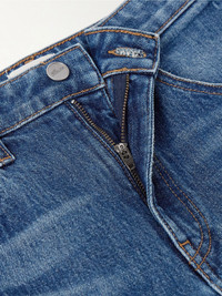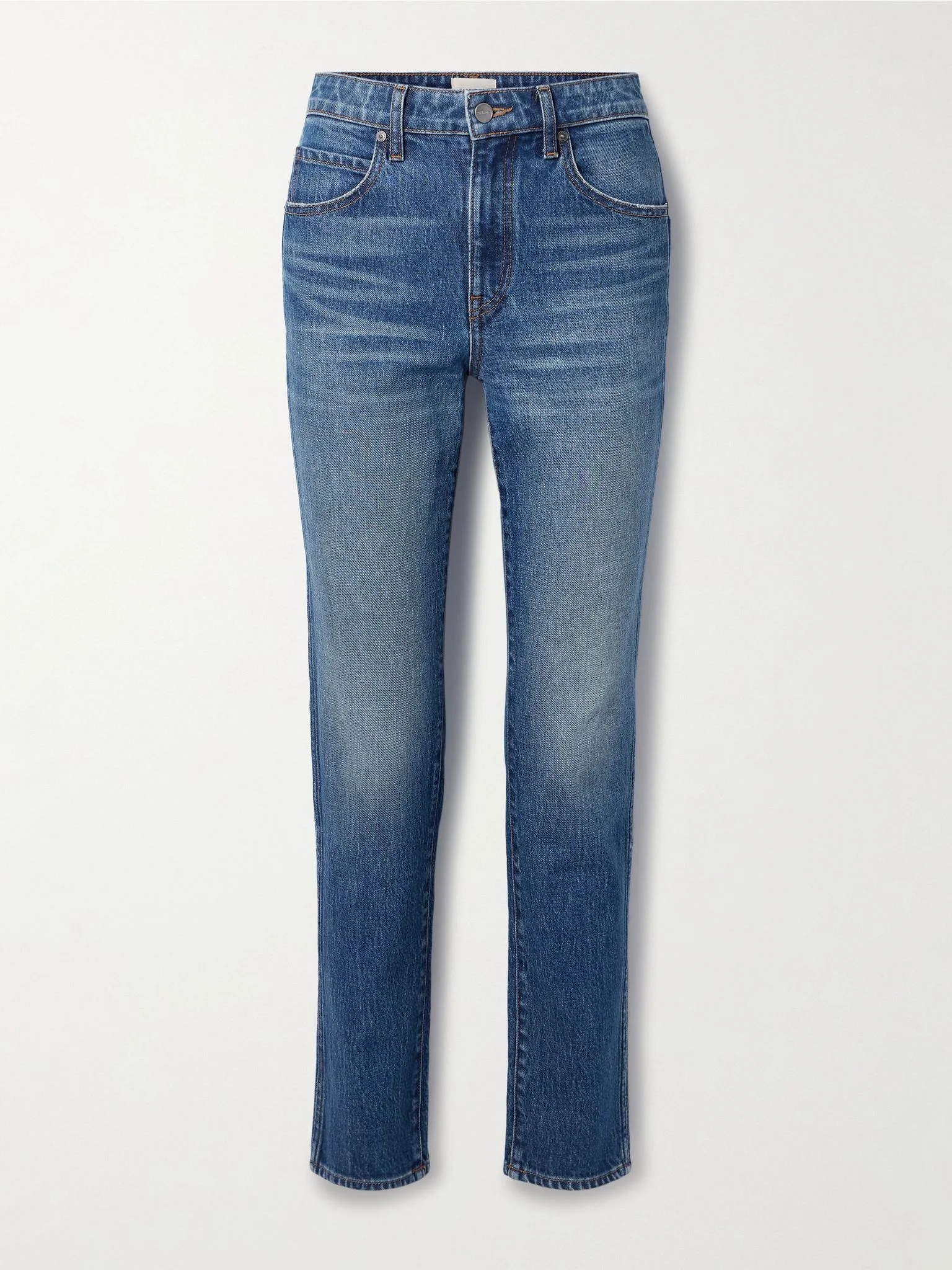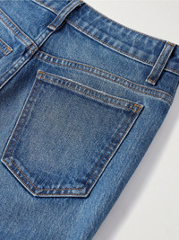 KHAITE's slim-leg 'Viv' jeans are a classic pair you'll return to for seasons to come. Made from faded denim, they have a high rise and five pockets outlined in gold thread. Style them with everything from sweaters to blazers. Size & Fit - Fits true to size, take your normal size - Those with curvy hips may wish to take the next size up - Mid-rise, cut for a slim fit - Mid-weight, non-stretchy denim - Model is 180cm/ 5'11" and is wearing a size 26 Model measurements: - Bust: 79cm/ 31" - Waist: 61cm/ 24" - Hip: 89cm/ 35" Details & Care - Blue denim - Button and concealed zip fastening at front - 98% cotton, 2% polyurethane - Designer wash: Harkins