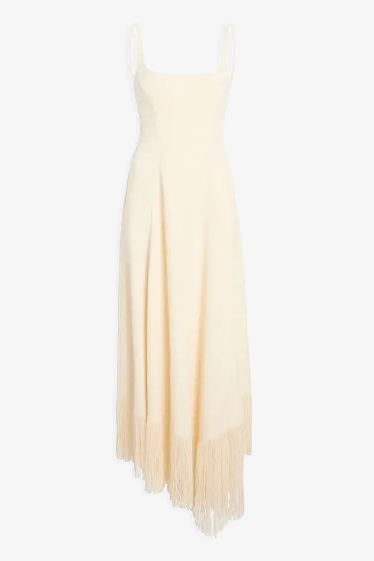 Ivory crepe midi dress from Khaite. The Vivian dress is made in crepe with fringe detailing, in a maxi silhouette. - Material: 100% Sterling Silver - Made in Italy Product Code: 56224223-103
