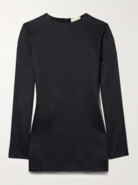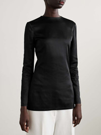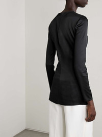 EDITORS'NOTES KHAITE's 'Vlad' top is made from lustrous satin that gives the understated design an elevated feel. It's cut for a close, figure-hugging fit with a long hem that's ideal for tucking into anything from low-rise jeans to one of the label's skirts. SIZE & FIT - Fits true to size, take your normal size - Those with a curvy figure may wish to take the next size up - Cut for a close fit - Lightweight, non-stretchy fabric - Model is 177cm/ 5'10" and is wearing a US 2 DETAILS & CARE - Black satin - Concealed hook and zip fastening at back - 61% acetate, 34% viscose, 5% elastane