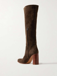 KHAITE's 'Willow' knee boots are a versatile pair that'll ground so many outfits - wear yours under floaty dresses or over slim-fitting jeans. Made in Italy from supple suede, they have rounded toes and stacked block heels that provide 90mm of comfortable lift. Size & Fit - Fits true to size, take your normal size - Italian sizing Details & Care - Heel measures approximately 90mm/ 3.5 inches - Dark-brown suede (Calf) - Pull on