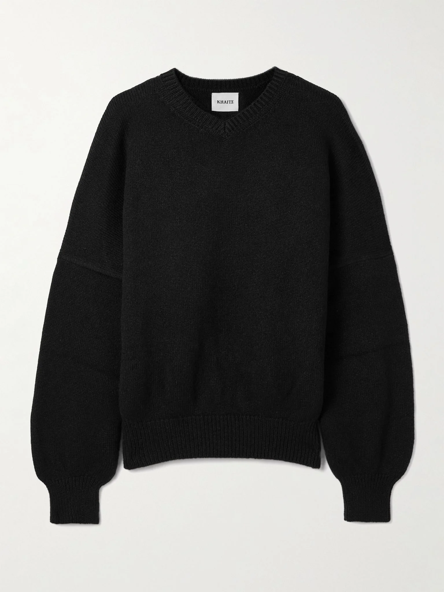 KHAITE's designs are timeless, sophisticated and thoughtfully made. This 'Wolfe' sweater is expertly knitted from cashmere and has dropped shoulders and voluminous sleeves. Size & Fit - Fits true to size, take your normal size - Designed for a relaxed fit with oversized sleeves - Dropped shoulder seams - Mid-weight knit - Model is 180cm/ 5'11" and is wearing a size Small Model measurements: - Bust: 79cm/ 31" - Waist: 61cm/ 24" - Hip: 89cm/ 35" Details & Care - Black cashmere - Slips on - 100% cashmere