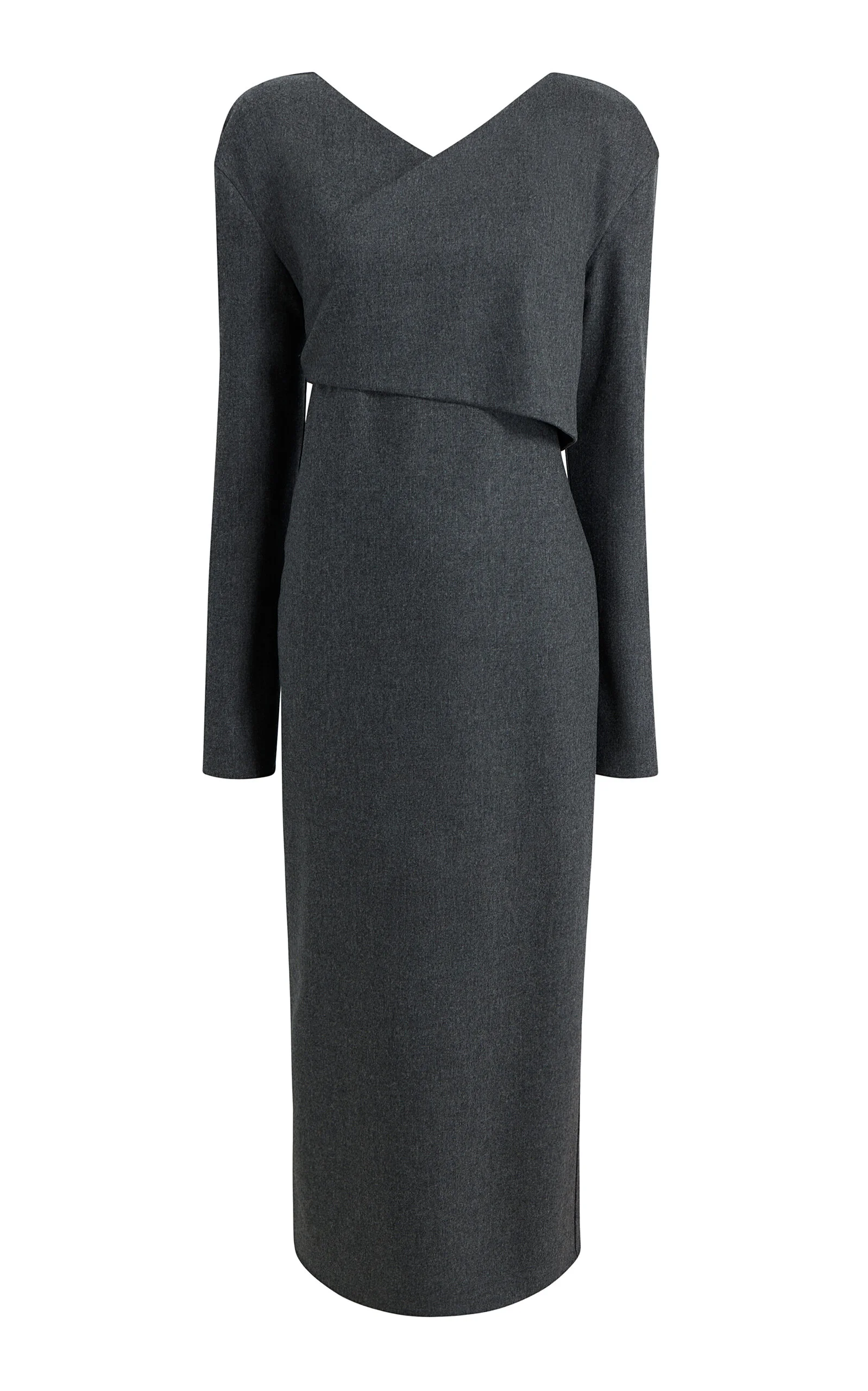 PRODUCT DETAILS - Slim fit, long sleeves, V-neck, wrap front - Zipper fastening - Composition: 100% Wool - Color: Storm - Dry clean - Fall '25