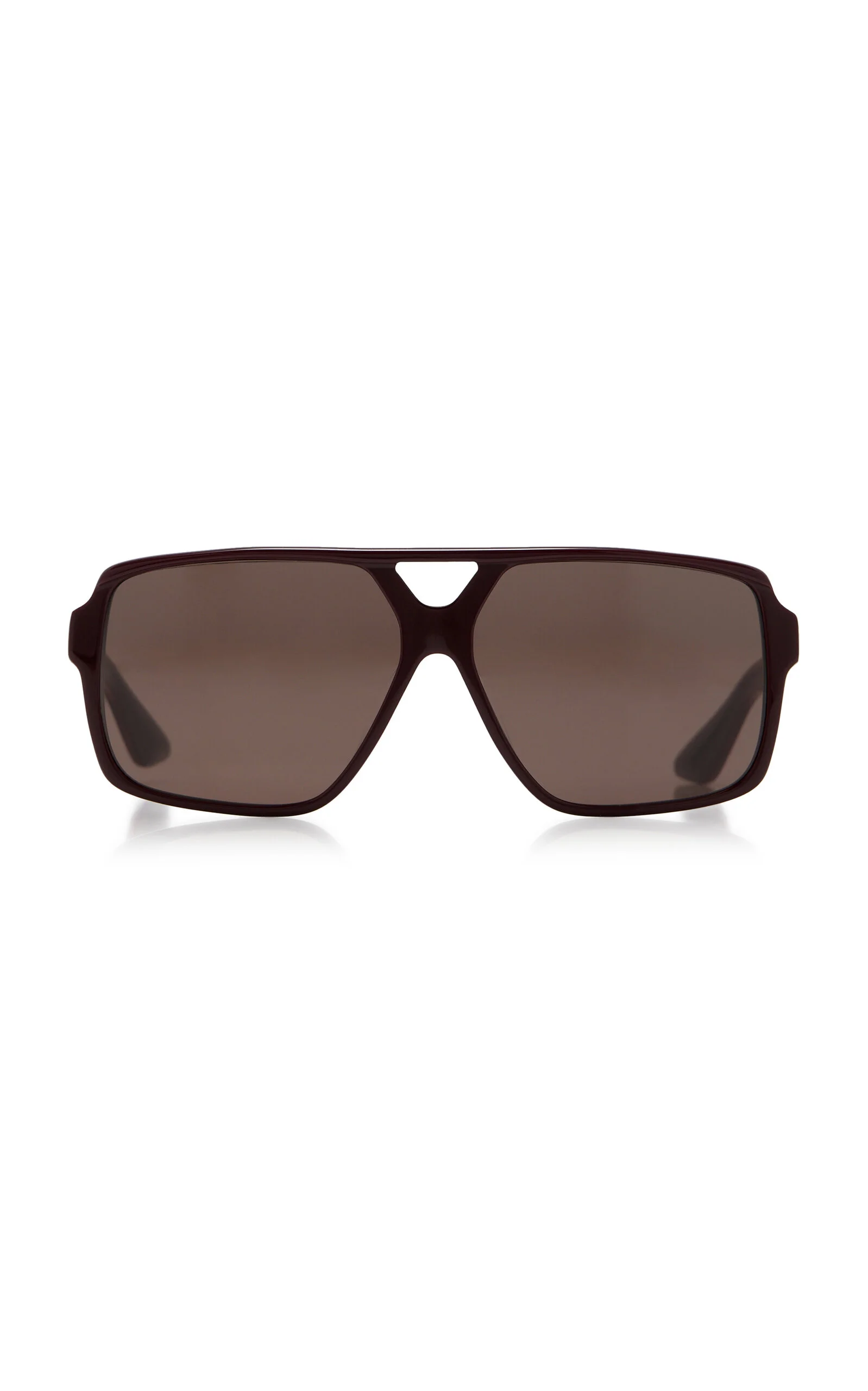 Made in collaboration with legendary eyewear brand Oliver Peoples, this collection reimagines vintage forms through a shared dedication to distinctive yet enduring style, exquisite materials, and unparalleled craftsmanship. This dedicated collection features a custom core wire inlaid between layers of acetate, inspired by Khaite’s metal hardware. The frames showcase Oliver Peoples and Khaite logos at the temple tips, complemented by dedicated packaging. With its oversized 1977 acetate frame, this pair features embedded metal details and exclusive Khaite elements enhance its distinctive style. Each pair of sunglasses come with a cleaning cloth and case to clean and protect your sunglasses from scratches and damage. To protect your eyes from harmful UV rays, these sunglasses include lenses that are coated with 100% UV protection. PRODUCT DETAILS - Resort '25 - Composition: acetate - Made in Italy
