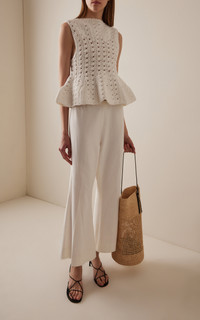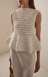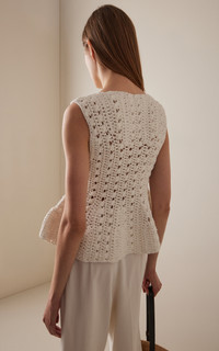 Yuka Crocheted Cotton-Blend Peplum Top white