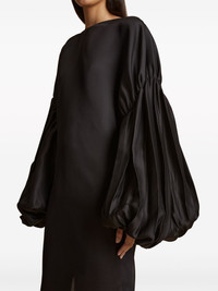 Zelma silk maxi dress Highlights - Black - Silk - Round neck - Balloon sleeves - Two thigh-high side slits - Curved hem - Long length Made in United States Composition Silk 100% SIZE & FIT Measurement BUST 41.73 in(106 cm) LENGTH 50.39 in(128 cm) Shoulder Width 24.4 in(62 cm) SLEEVE LENGTH 24.4 in(62 cm) WAIST 39.37 in(100 cm)