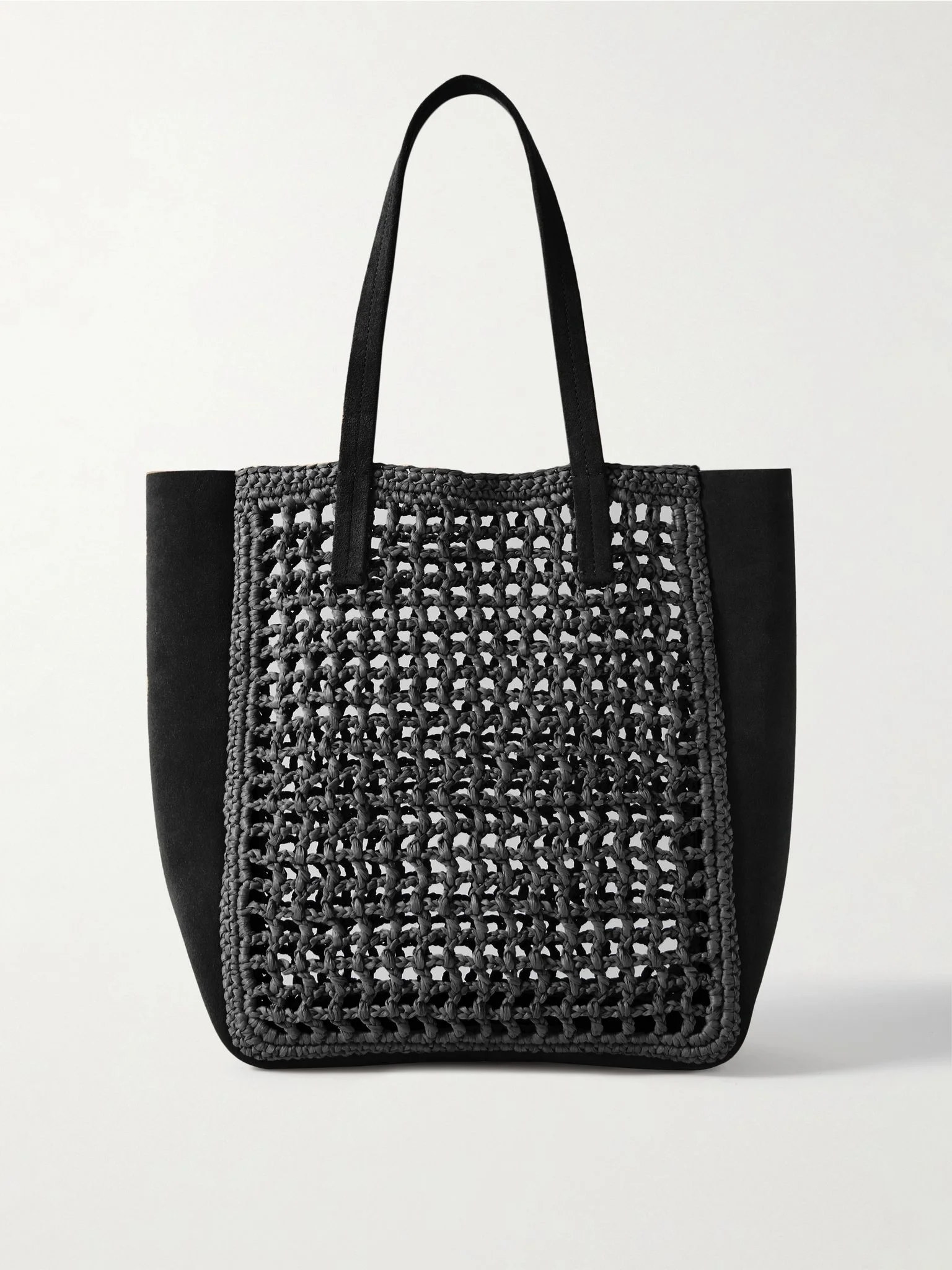 KHAITE's 'Zoe' tote is made from a combination of leather and intricately crocheted raffia, giving it plenty of textural interest. It's designed in an unstructured shape and has top handles that fit comfortably over the shoulders. Slip your tablet, continental wallet and small cosmetics pouch inside. Details & Care - Black leather (Lamb) and raffia - Two top handles - Unlined - Open top